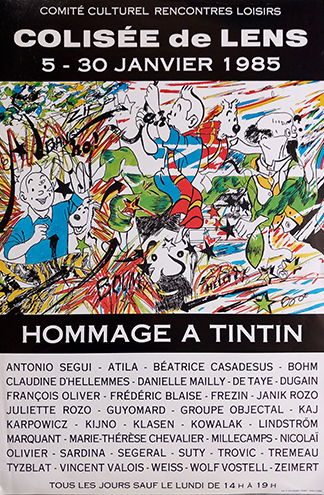 Affiche Hommage à Tintin,1985. Acrylique, feutres sur papier.