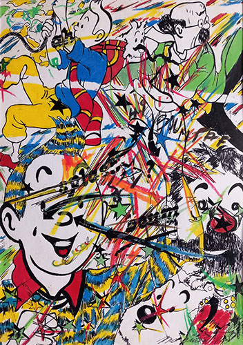 Hommage à Tintin,1985. 21 x 29,7 cm. Acrylique, feutres sur papier.