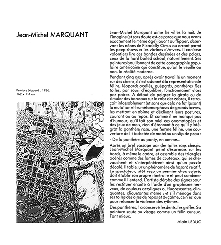 Des panthères, il a conservé les dents, les griffes. Sa peinture saute au visage comme un félin curieux. Tant mieux.