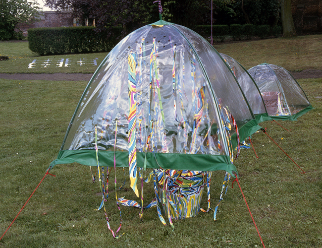 Parapluie, 1990 -1991, Musée éphémère - Trith-Saint-Léger. Acrylique, cordes, serre et pot.