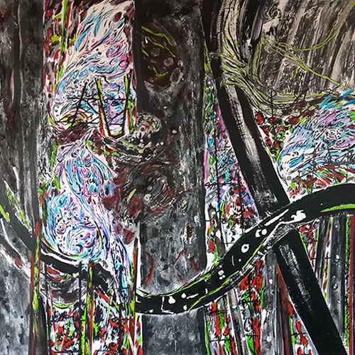Sans titre, 2022. 120 x 100 cm. Acrylique, techniques mixtes sur toile.