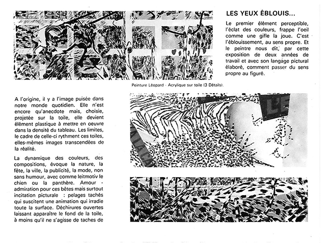 S'il n'existe plus cette dichotomie entre figuratif et abstrait, pourquoi y en aurait-il pour le peintre entre une panthère majestueuse et un tapis acrylique ?